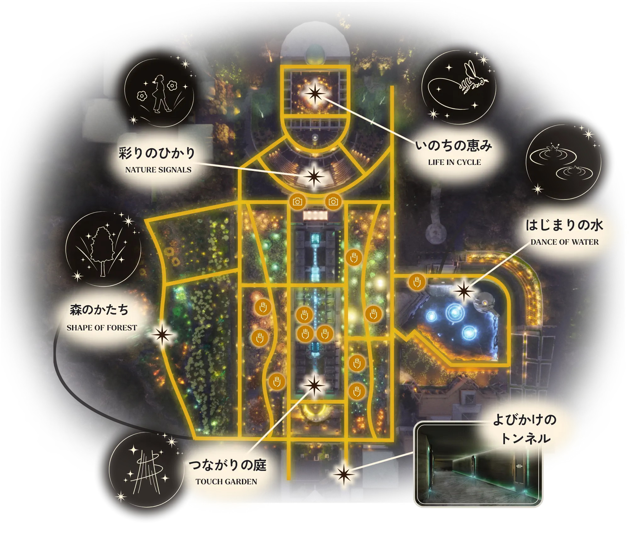 光の迷路や光の魔法のじゅうたん、レーザーによる光の演出など見どころたくさん。
